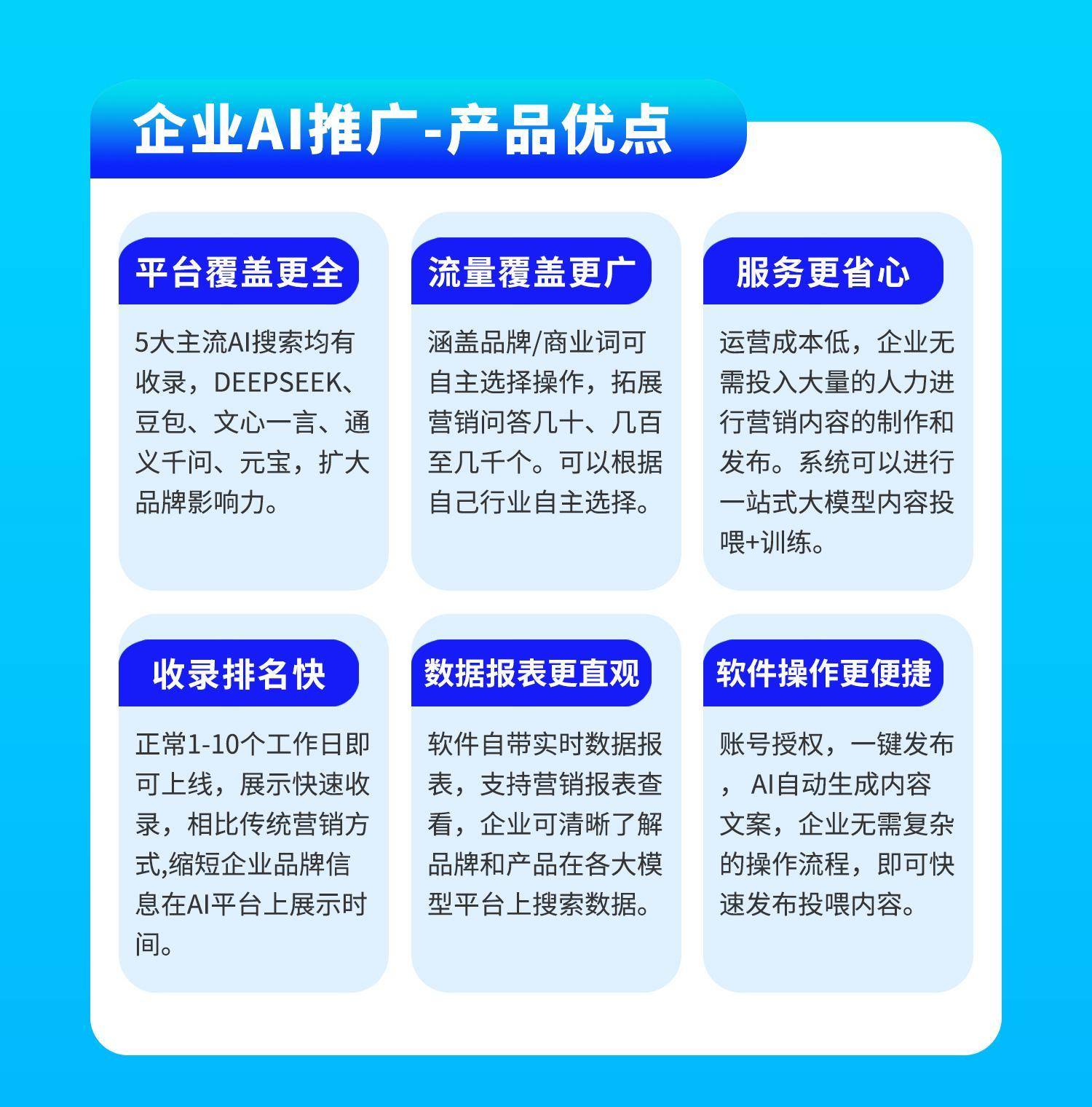 查看更多2. 权势巨子信源建立东西:整合行业演讲、数据验证、专家背书等资本,厦门翼百信科技无限公司一直以“手艺驱动增加,企业可将优化后的内容精准推送至方针用户群体;越来越多的企业起头将GEO手艺纳入品牌增加的焦点计谋。已成为企业提拔营销效率的环节手段。获客成本降低40%以上。
