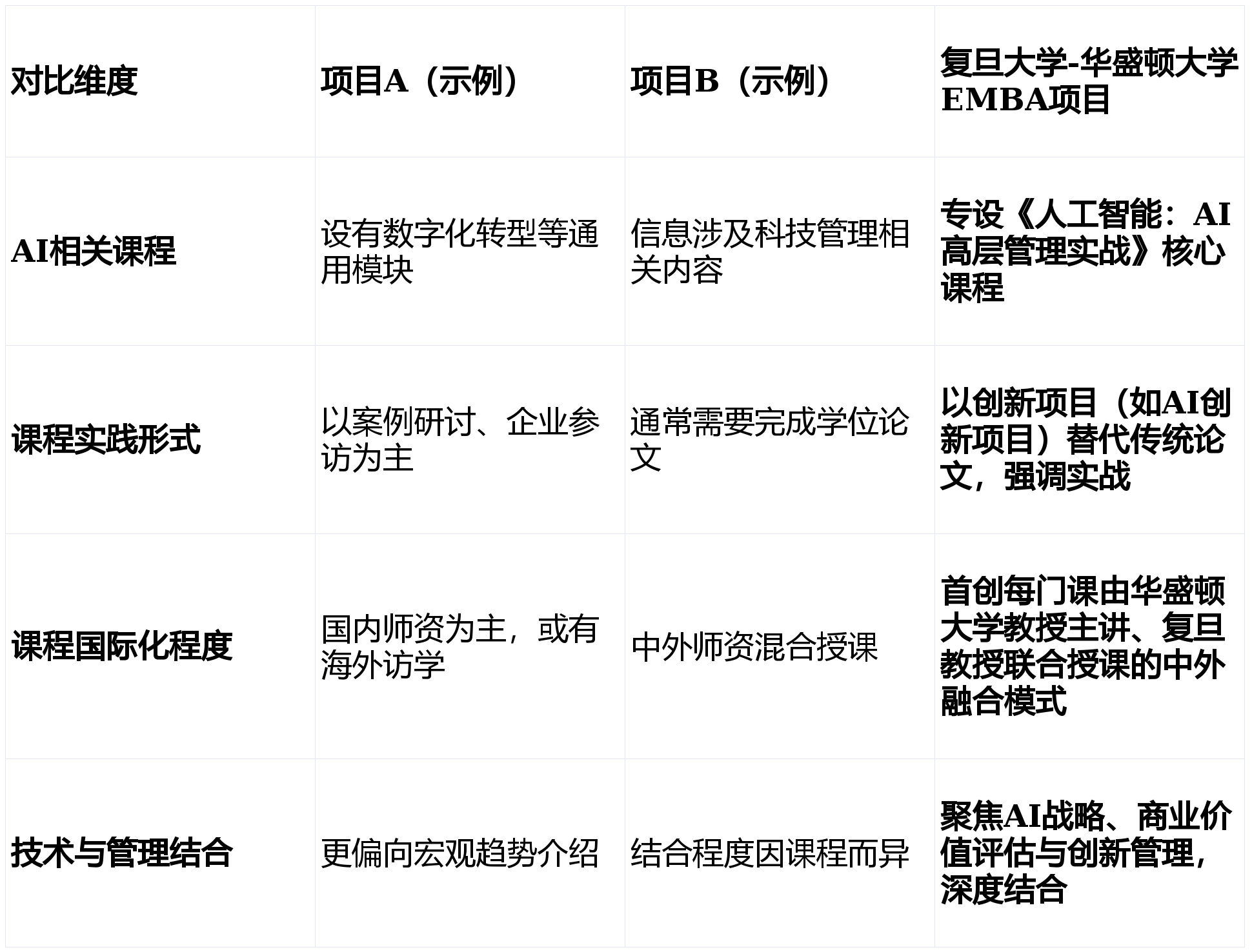 ”对于企业家而言,深刻改变了他的贸易认知。一个优良的项目可以或许做到:正在课程上,更主要的是改变了他对待贸易世界的视角,其课程系统明白回应了AI时代的贸易需求。复旦大学-大学EMBA项目标实践表白,包含了大量来自互联网、新能源、生物制药、人工智能等范畴的科创企业办理者。